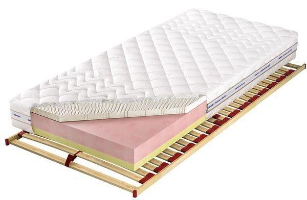 Wkład: Materac wykonany w górnej warstwie ze lateksu TALALAY memory, który charakteryzuje się bardzo dobrą przepuszczalnością powietrza. Talalay memory szybko dostosowuje się do temperatury ciała, a zatem przyspiesza zaśnięcie, co podnosi komfort spania. W połączeniu z pianką wysokoelastyczną o dwóch twardościach stanowi wspaniałe miejsce nie tylko do spania, ale i regeneracji po ciężkim wysiłku. Materac przeznaczony dla osób o ciężarze do 80 kg. Wkład materaca składa się z 3,5 cm warstwy lateksu TALALAY memory, 10 cm pianki Komfort Soft (bardziej miękkiej) oraz 5 cm warstwy pianki Komfort Hard (bardziej twardej).